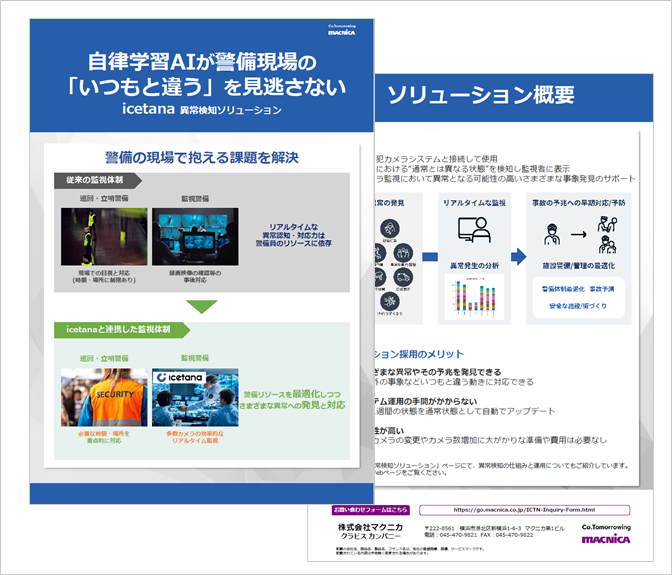 施設警備や施設管理コストでのお困りごとがある方や、異常検知ソリューション「icetana」について興味があって説明を受けたい等、ご要望ございましたら是非こちらよりお気軽にお問い合わせください。