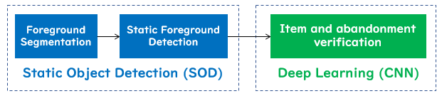 Video surveillance automation for monitoring public spaces and increasing security measures has gained popularity over the years. One common application is abandoned object detection (AOD) which focuses on the early identification of unattended and static objects. With AOD, suspicious or lost items are automatically flagged so security personnel can be immediately alerted for appropriate actions.