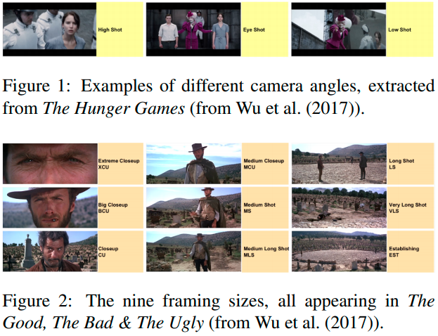 キャプション:Figure 1: Examples of different camera angles.Figure 2: The nine framing sizes.