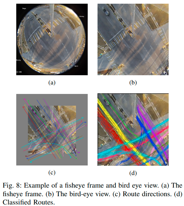 キャプション:Fig. 8. Example of a fisheye frame and bird eye view.