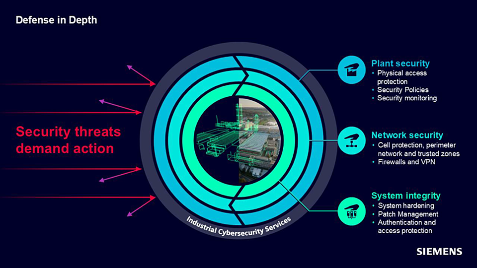 シーメンスでは、この多層防御を主に 3つの層 に分けて説明しています。