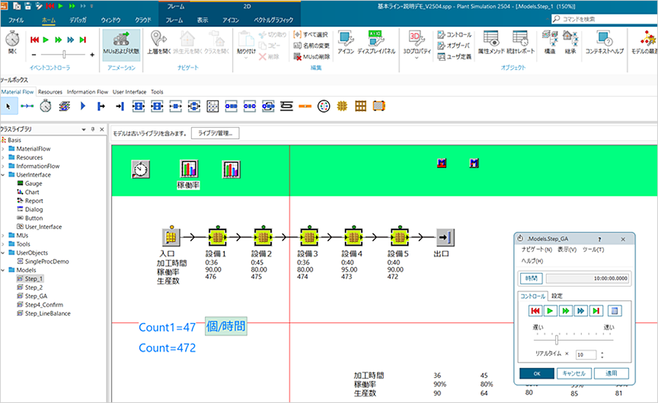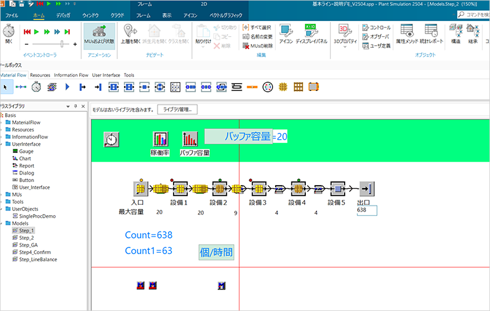 シミュレーション①:同じ設備スペック・稼働条件をPlant Simulation上でモデル化