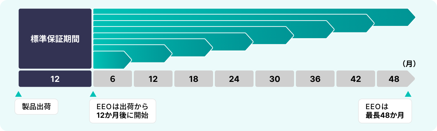 ※ EEO の最短期間は 6ヶ月で、6ヶ月単位で最長 48ヶ月まで選択可能で、標準保証と組み合わせて最長保証期間は合計で 60ヶ月です。