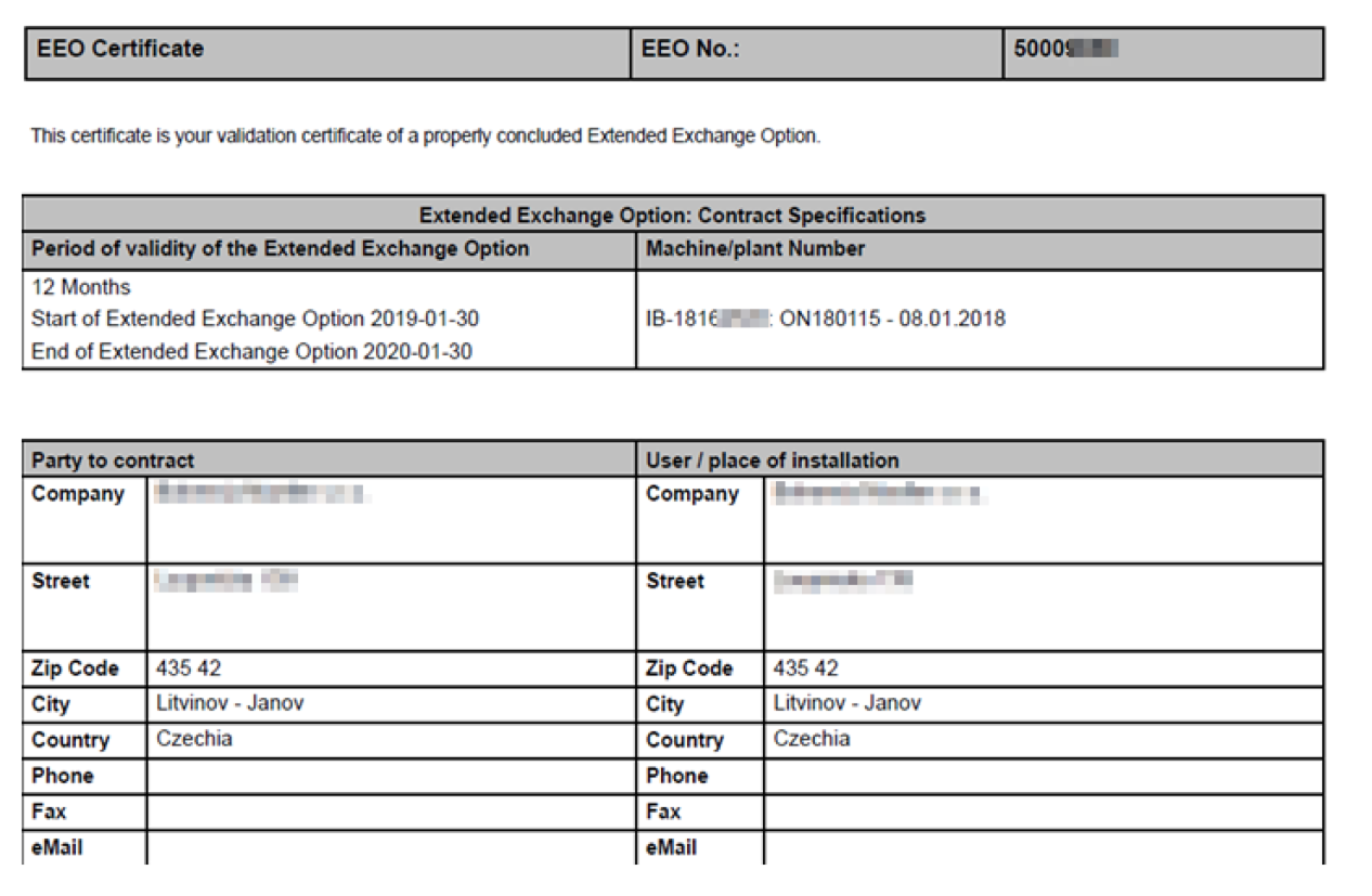 EEO をご注文いただくと、PDF 形式の証明書が発行されます。この証明書は契約書としての役割を持ち、交換対応をスムーズに進めるための重要なドキュメントです。
