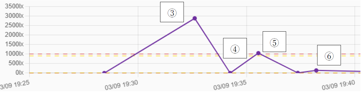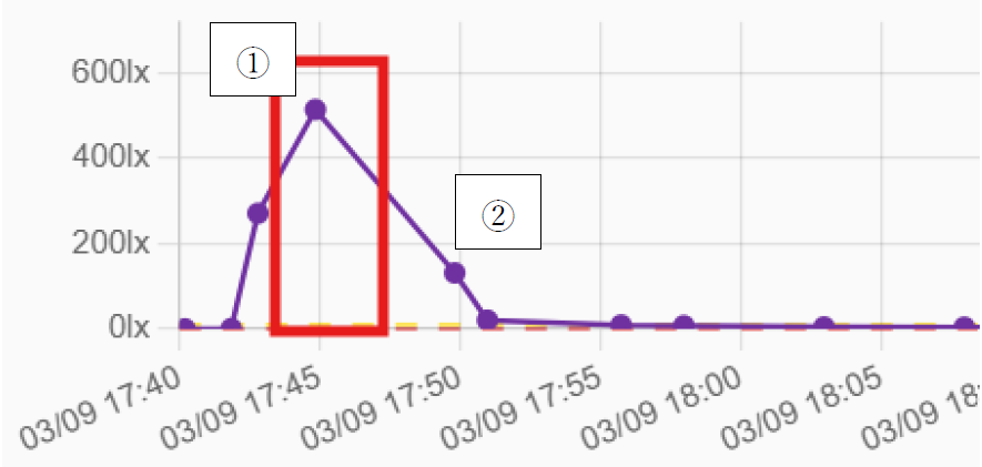 ・取得データ:照度(lx)、明暗状態