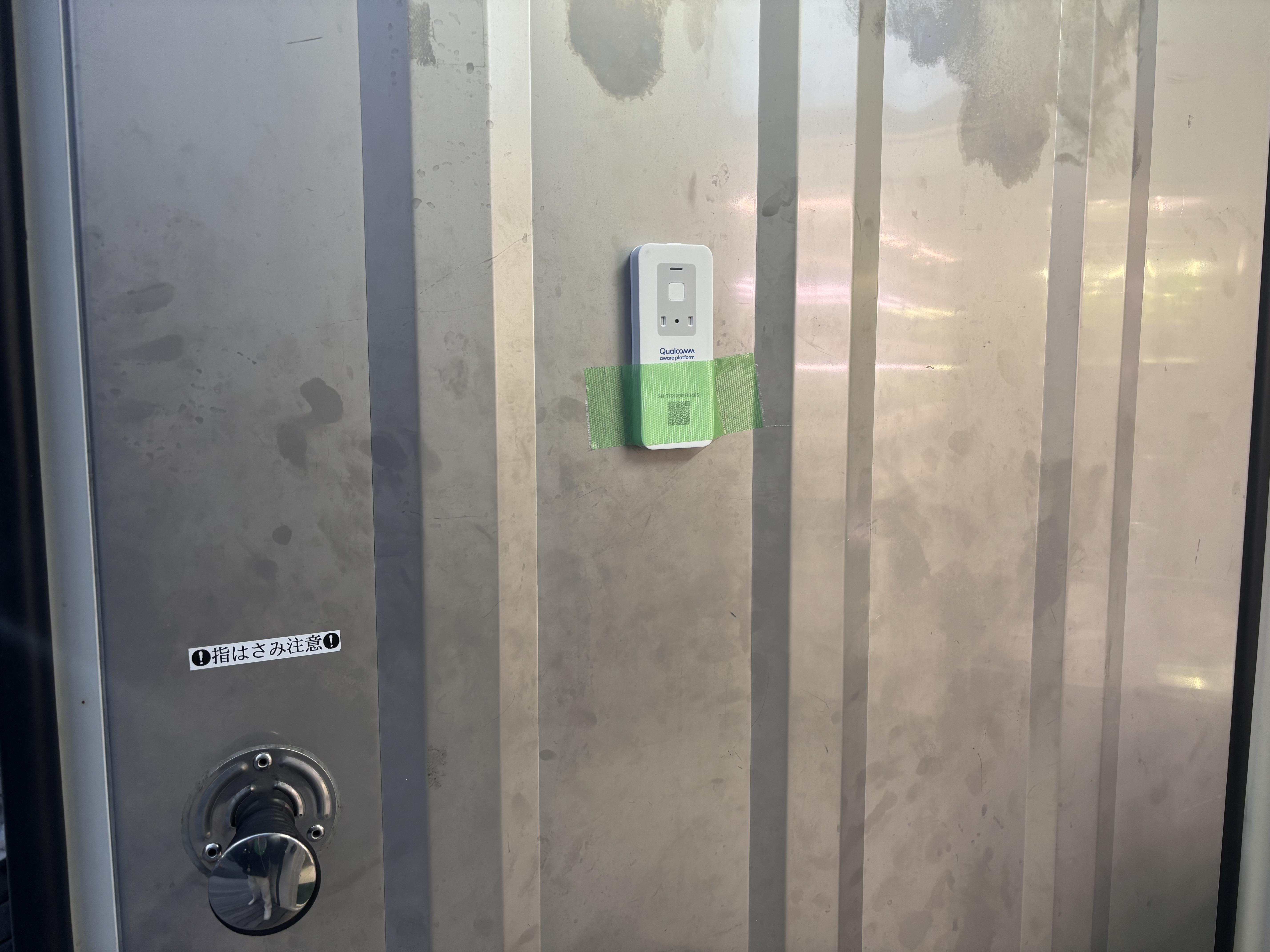 実運用を想定し、屋外設置のコンテナ内部にセンサー端末を設置。日没前後の明るさの変化や、ドアの開閉に伴う照度変化の計測を行いました。