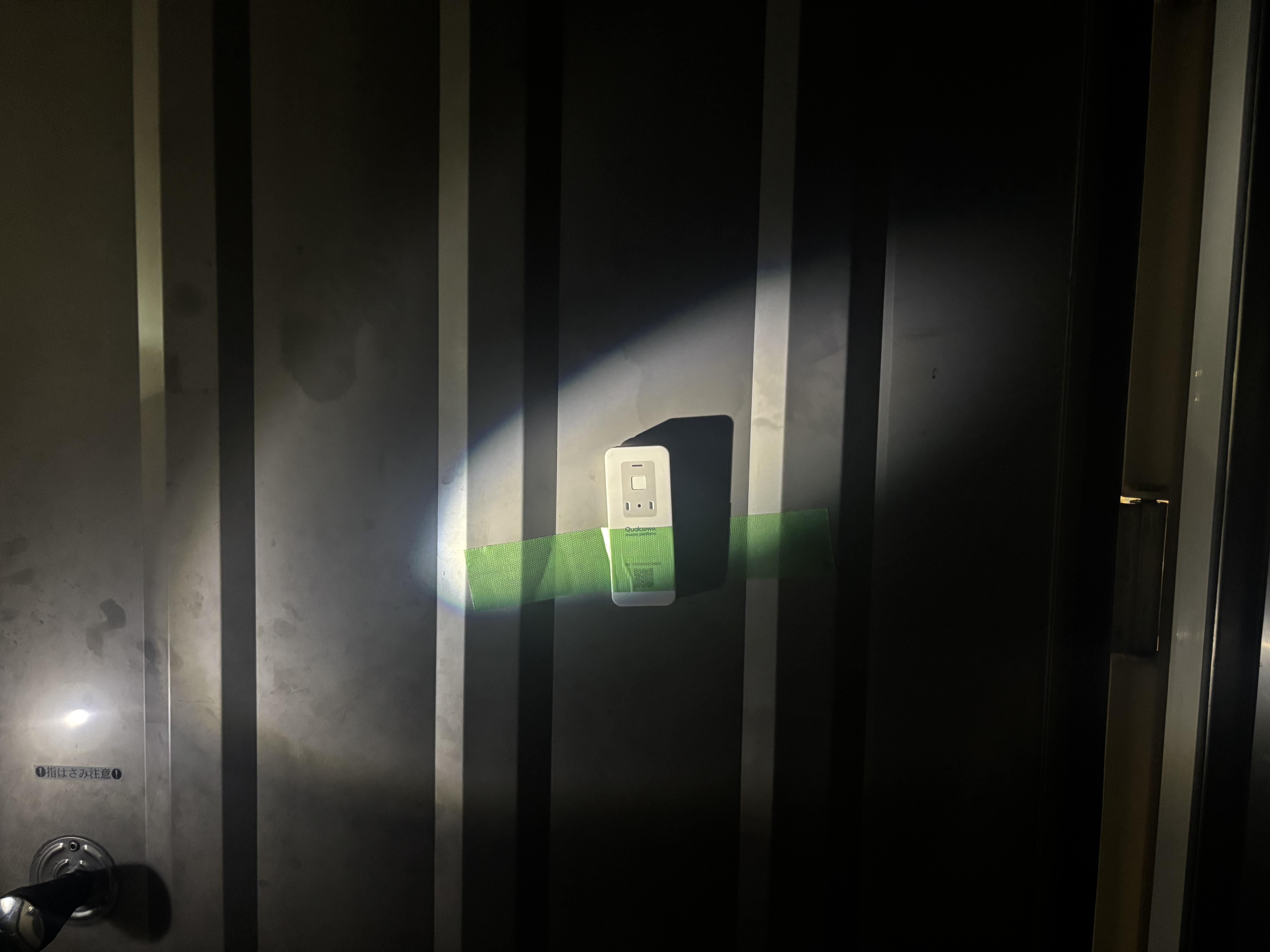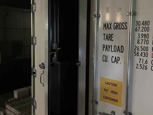 コンテナのドアを開ける(懐中電灯では照らさない状態) |