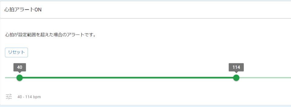 心拍・呼吸が設定値の範囲外になった場合に、アラートが発報します。