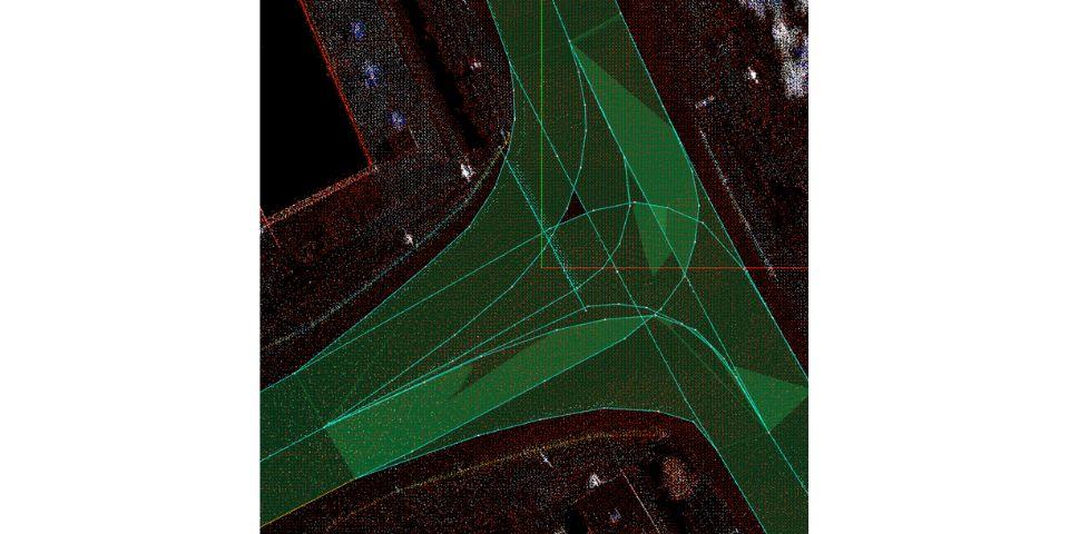 HDマップ(またはベクターマップ)は、交通ルールと走行可能な車線に焦点を当てた地図情報です。車線、道路標識、信号機、制限速度、横断歩道、駐車場など、出発前に把握し、完璧な状態で出発できるため、車両の走行エリアは限定されますが、HDマップを使うことで、多くのプロセッシングリソースを節約することができます。 HDマップは通常、専用のツールを使い手作業で作成されます。