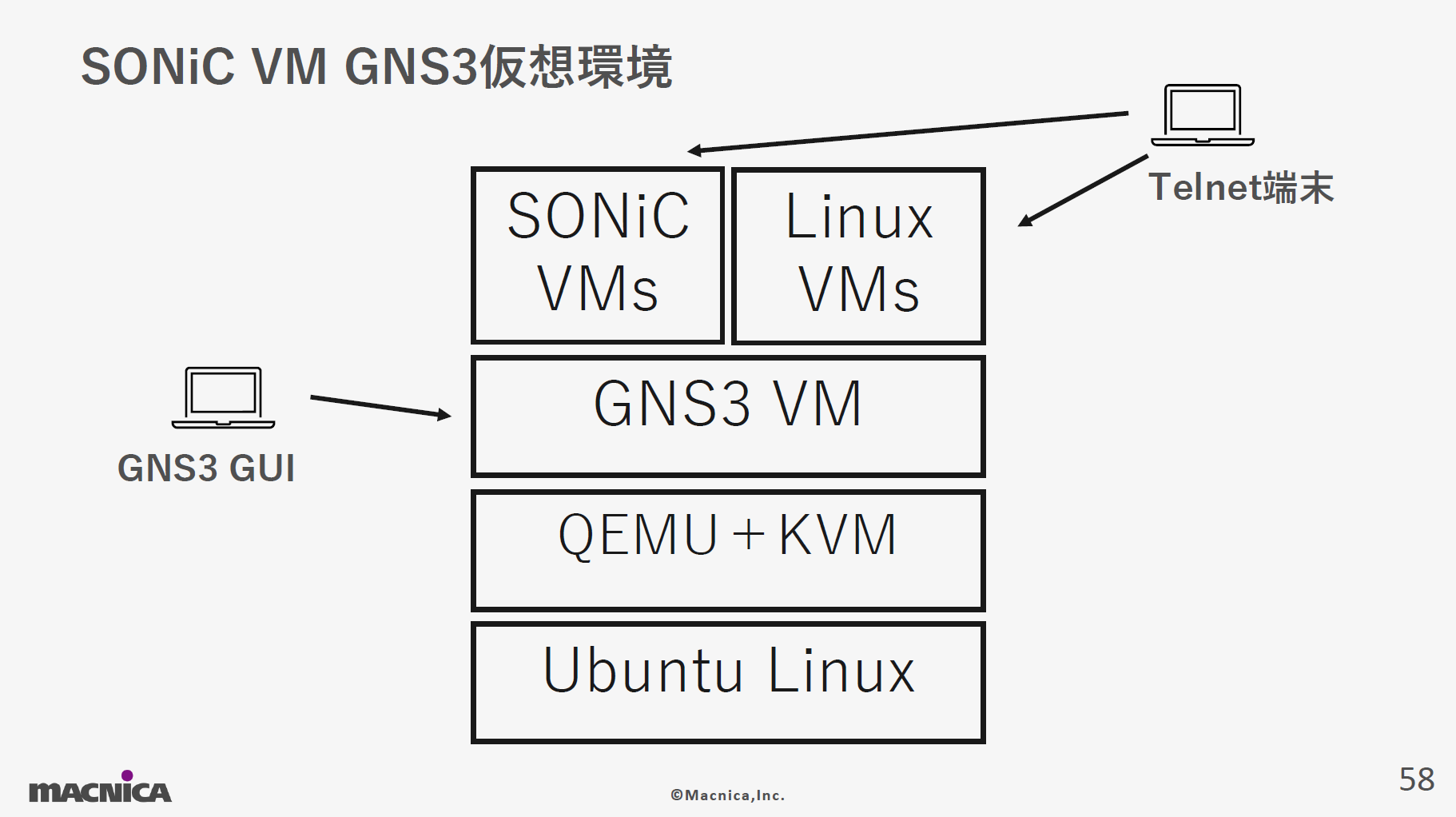 今回は、GNS3上でSONiCの仮想マシン(VM)にアクセスして操作を行いました。