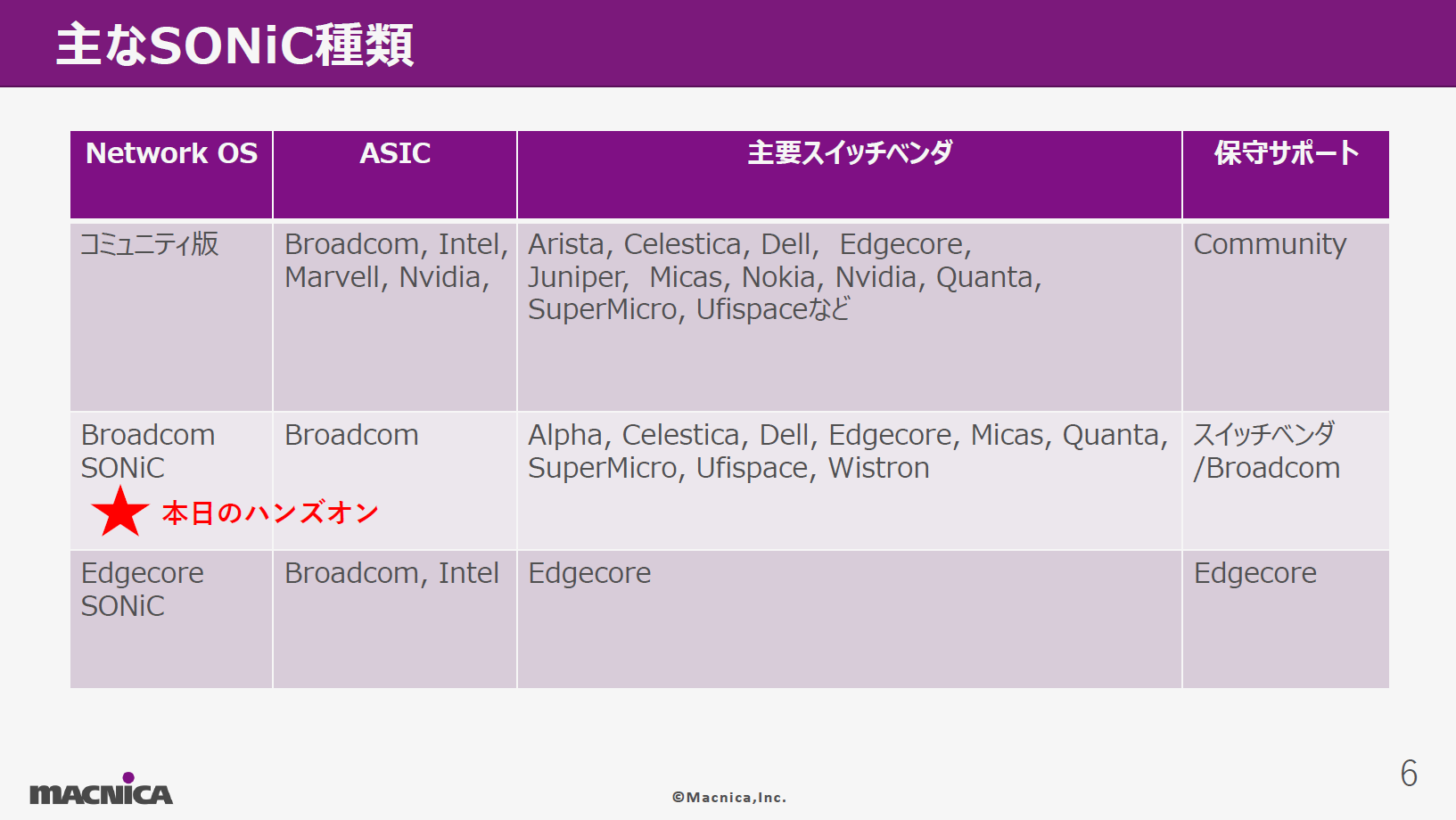 ※今回開催したハンズオンセミナーでは、Broadcom SONiCを取り扱いました。