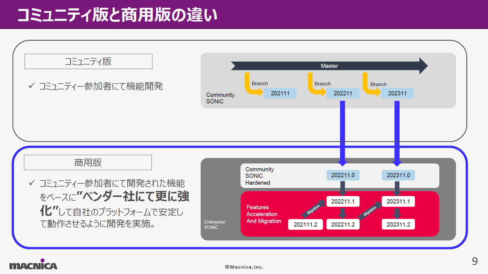 次に、無償で使えるコミュニティ版のOSS SONiCと、Edgecore 版SONiCとの違いについて説明します。