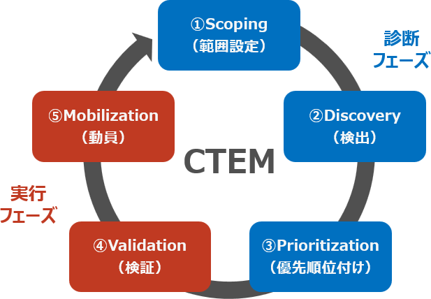 - 脆弱性・設定不備などあらゆるエクスポージャーを洗い出し優先順位を付ける(診断フェーズ)