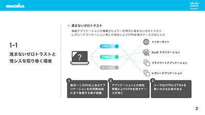 Cisco Secure Access ![]() ![]() ![]() Cisco Secure Accessは、企業のネットワークやアプリケーションへの安全なアクセスを実現する、クラウドベースのセキュリティ・サービス・エッジ(SSE)ソリューションです。あらゆるデバイスや場所からの接続を保護し、ゼロトラストセキュリティのアプローチで、柔軟かつ効率的なリモートワークや安全な業務環境をサポート。IT部門の運用負荷軽減も実現し、誰にとってもより安心・安全で快適なセキュリティ環境を実現します。 |