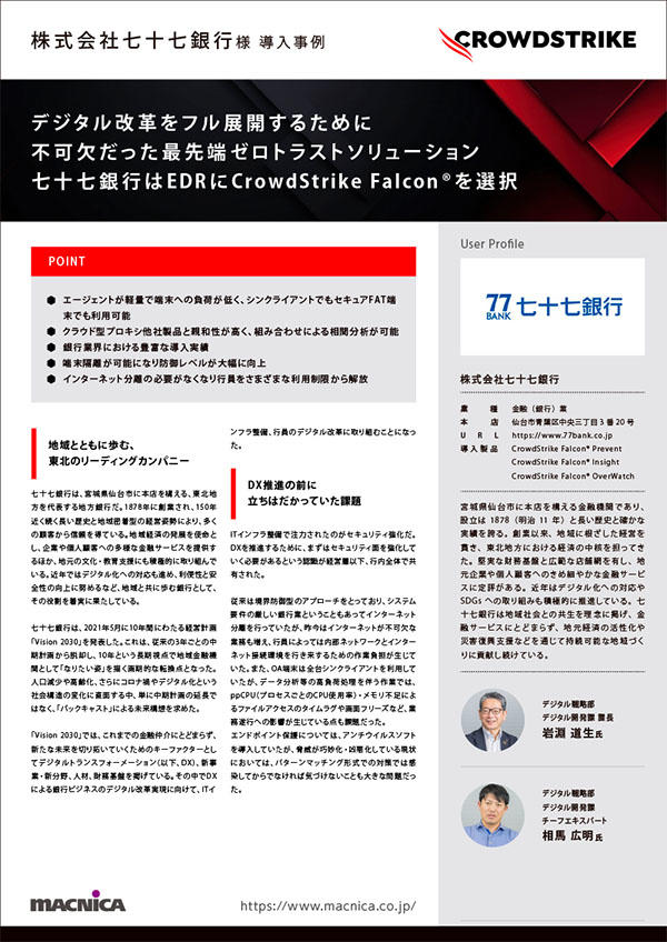 七十七銀行はEDR にCrowdStrike Falcon ® を選択
