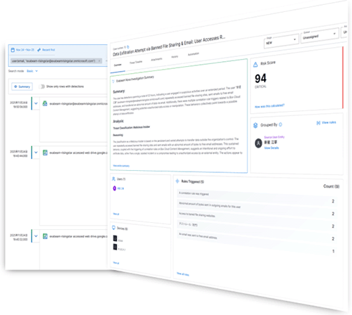 まずは社員の行動を可視化することが重要です。Exabeamは大量のログを人軸に自動整理し、社員の異常行動を早期に発見します。