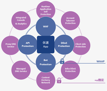 - 「WAAP」という考え方をベースとし、総合的なセキュリティ機能を提供するトータルソリューションがあります。