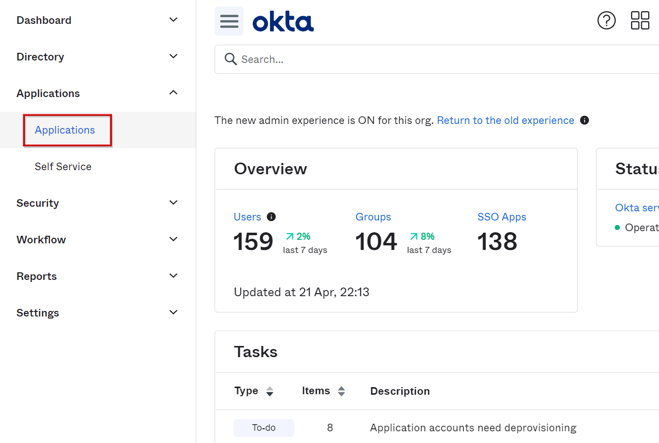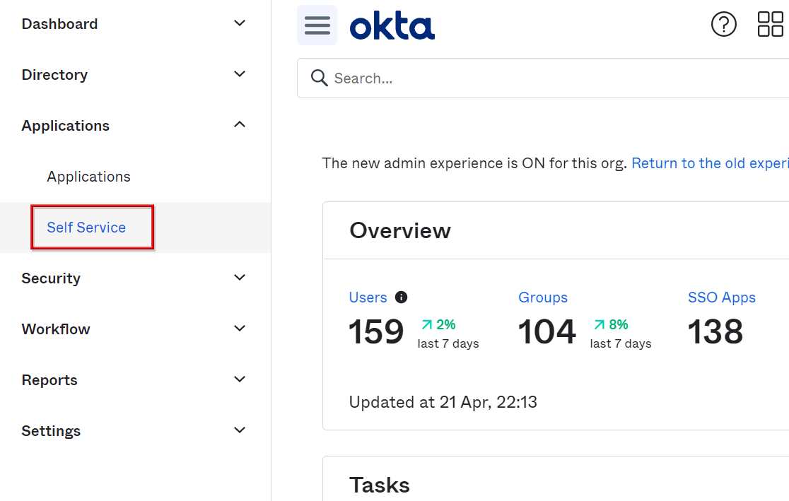 - Applications > Self Service画面で、Available Appsに該当アプリケーションが追加されたことを確認し、Okta側の設定完了