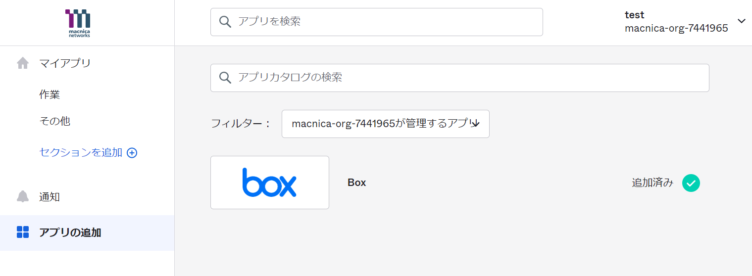 - 該当アプリケーションの「追加する」が「追加済み」になったことを確認