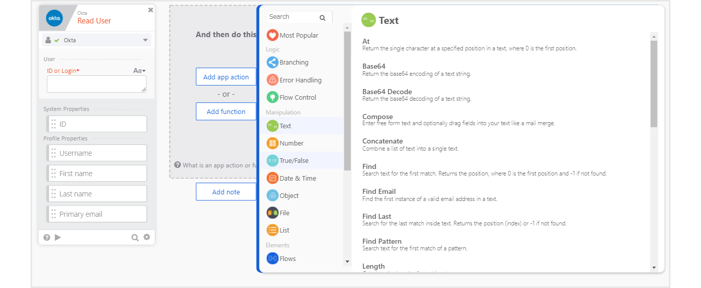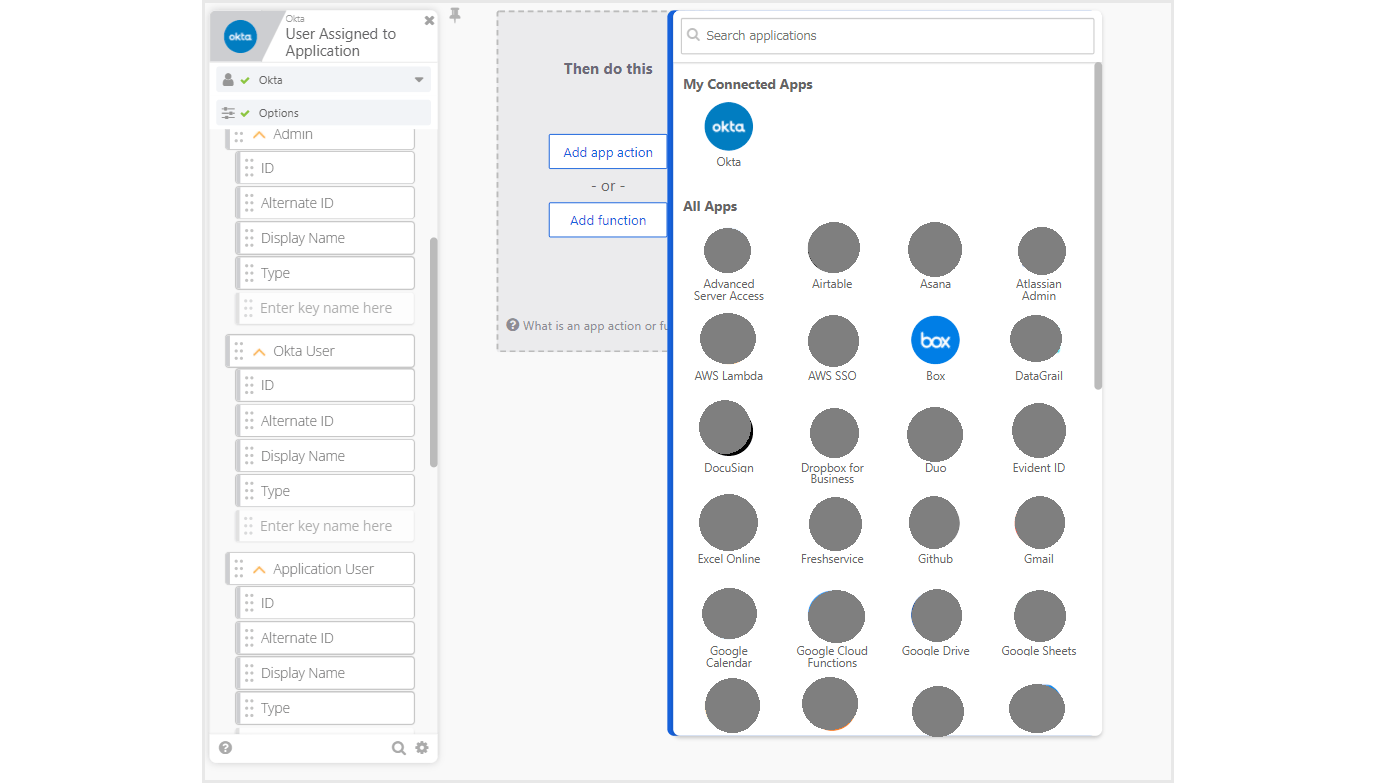 • Add app actionをクリックし、再度Oktaを選択