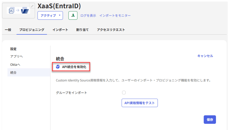- プロビジョニングタブで「API統合を有効化」を有効にする