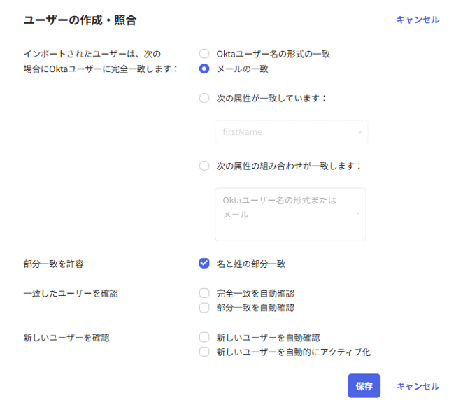 - 「Oktaへ」を選択し、インポート時の挙動を指定