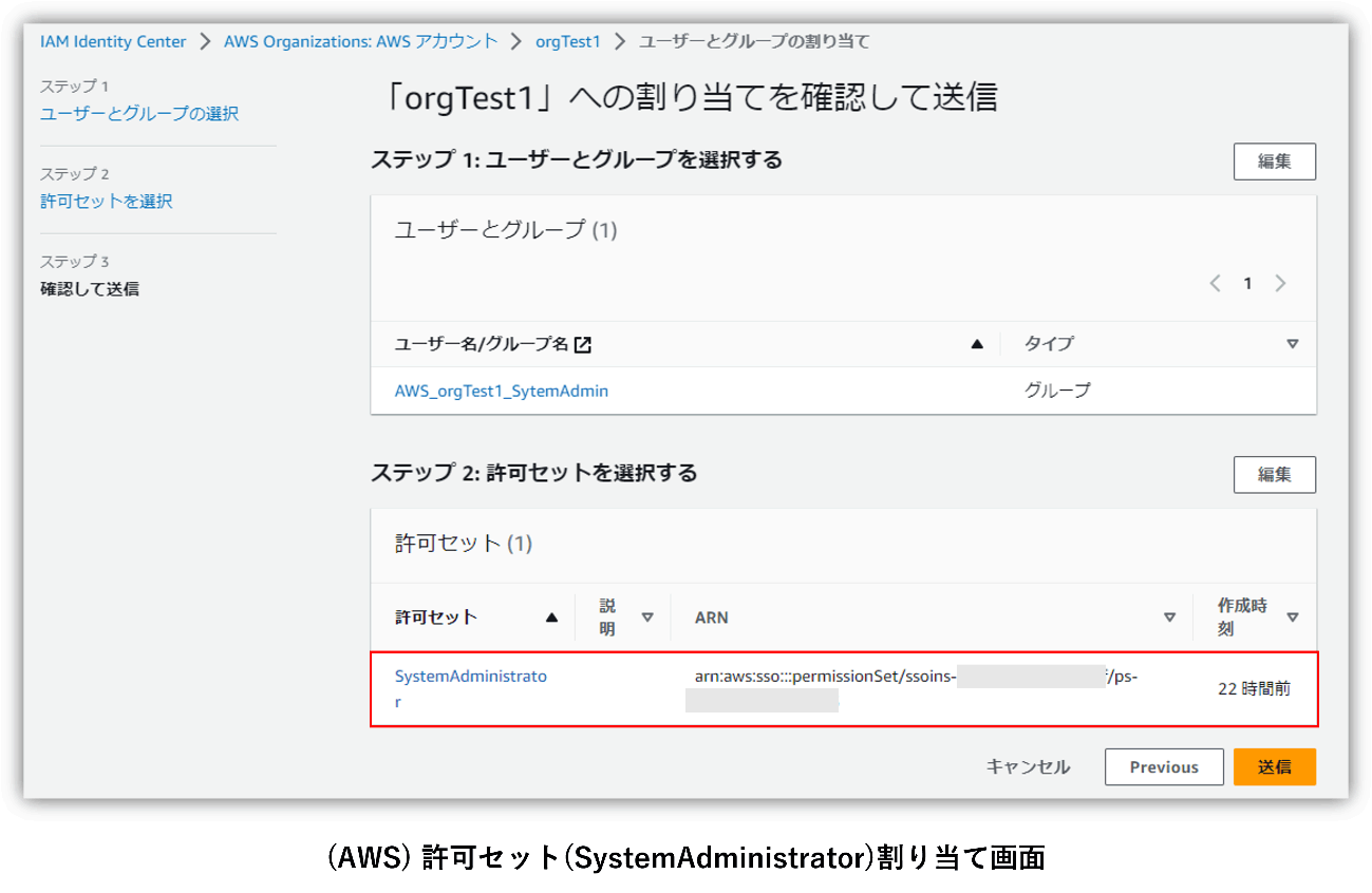 SystemAdministratorユーザーのグループプッシュ用グループ - AWS_orgTest1_SystemAdmin_Assign
