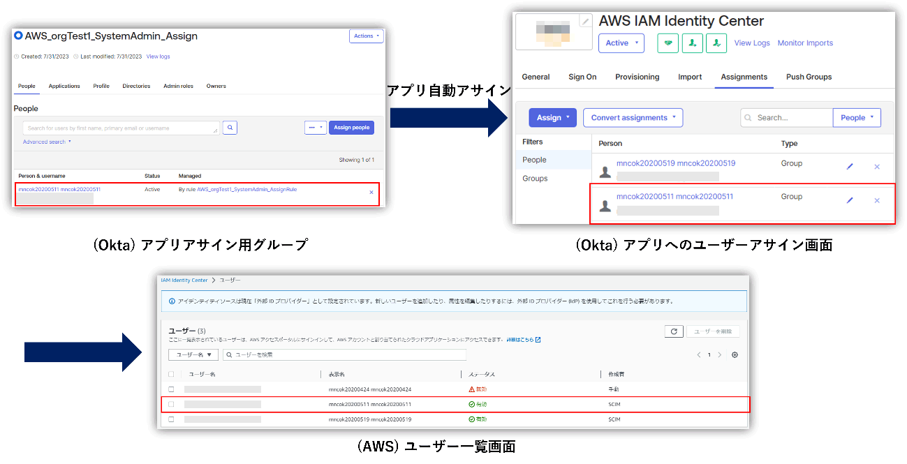 - Okta→AWS IAM Identity Centerへ作成したグループへのユーザーアサイン