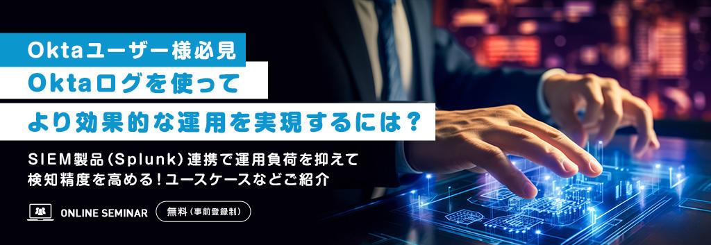 本セミナーでは、そんなOktaをより効果的に活用いただくために、SIEM製品であるSplunkと連携したソリューションをご紹介します。