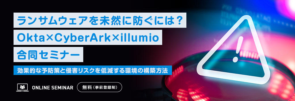 本セミナーでは、この「予防」を実現することができる3製品をまとめてご紹介します。多要素認証によりアイデンティティを保護するOkta、特権ID対策を実現するCyberArk、マイクロセグメンテーションにより攻撃の拡散を防ぐillumio、それぞれの詳細を一度に知ることができるセミナーです。この機会に是非ご参加ください。