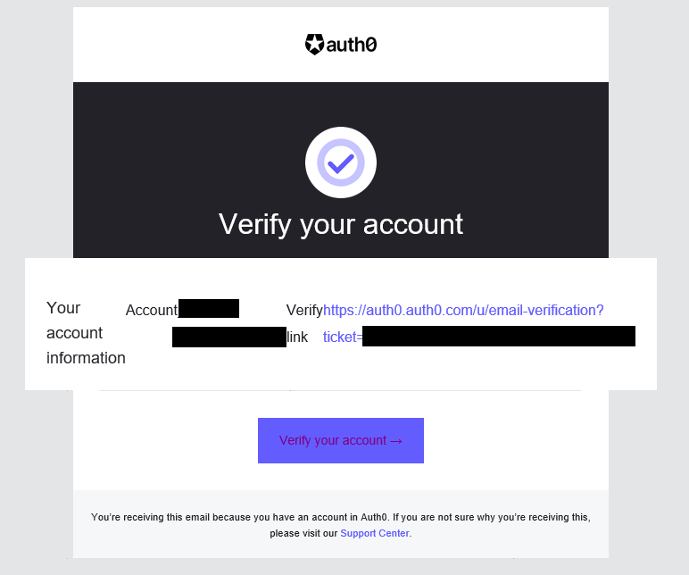 ①登録したメールアドレス宛にAuth0から確認メールが届きます。