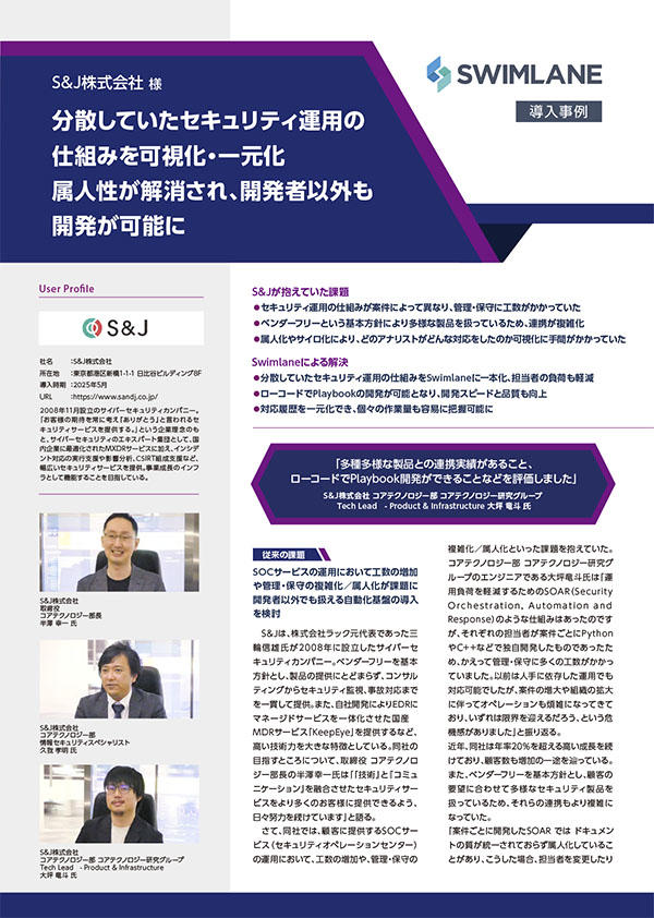 - 分散していたセキュリティ運用の仕組みをSwimlaneに一本化、担当者の負荷も軽減