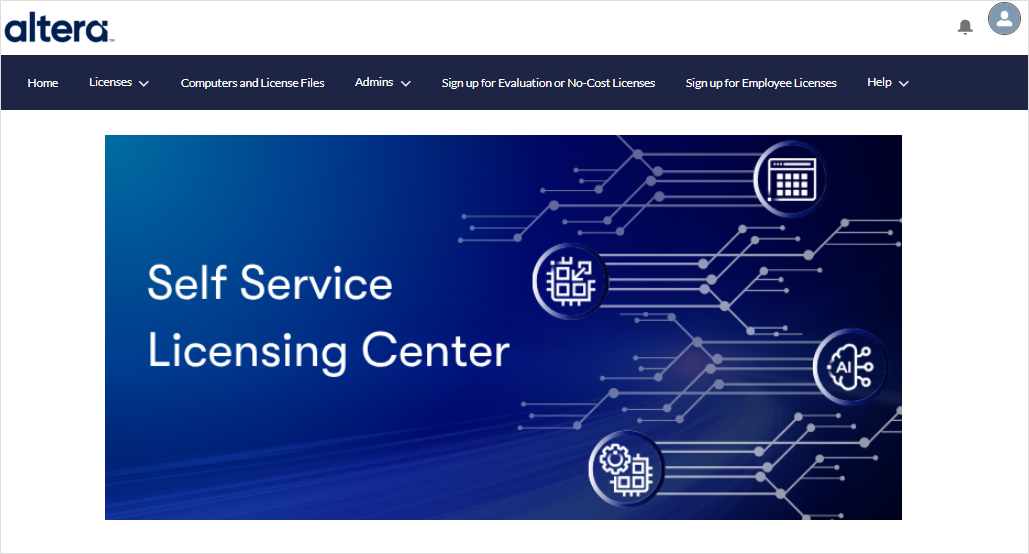 FPGA Self-Service License Center のトップページが表示されれば、アクセス完了です。
