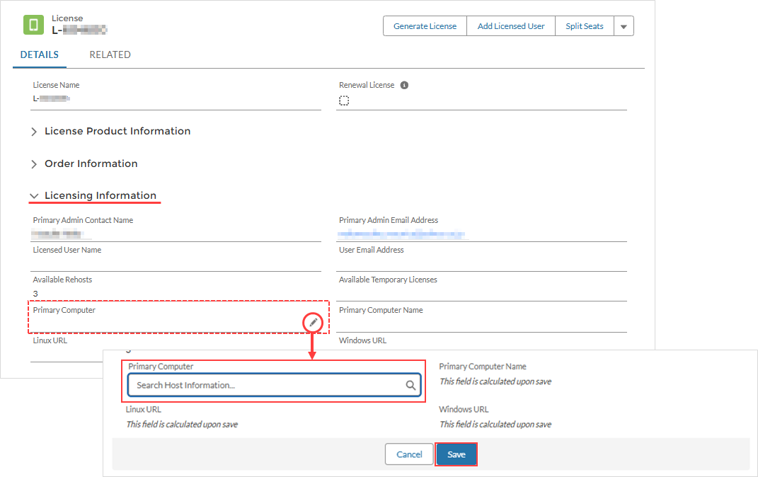 2. 該当するライセンスの License Name (L-) をクリックし、リンクされたページへ移動します。