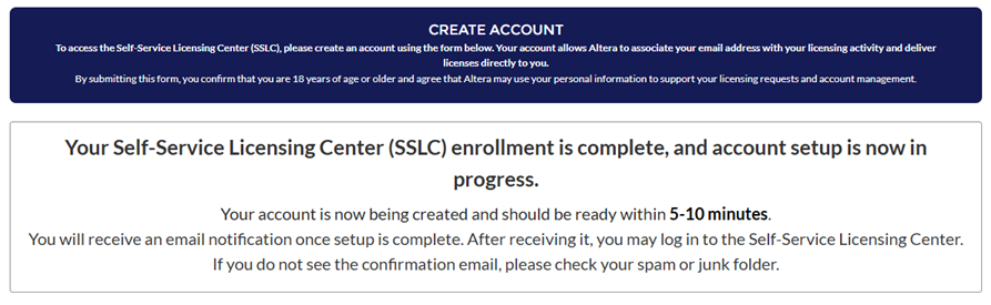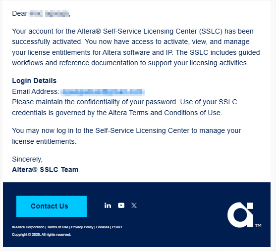 "Welcome to Altera Self-Service Licensing Center" メールが届いているかを確認してください。