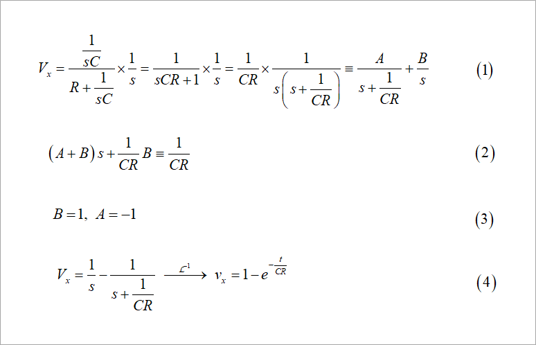 キャパシタのインピーダンス表示は、1/sCで、ステップ波形は1/sなので、図2に示す計算で比較的簡単に求めることができます。