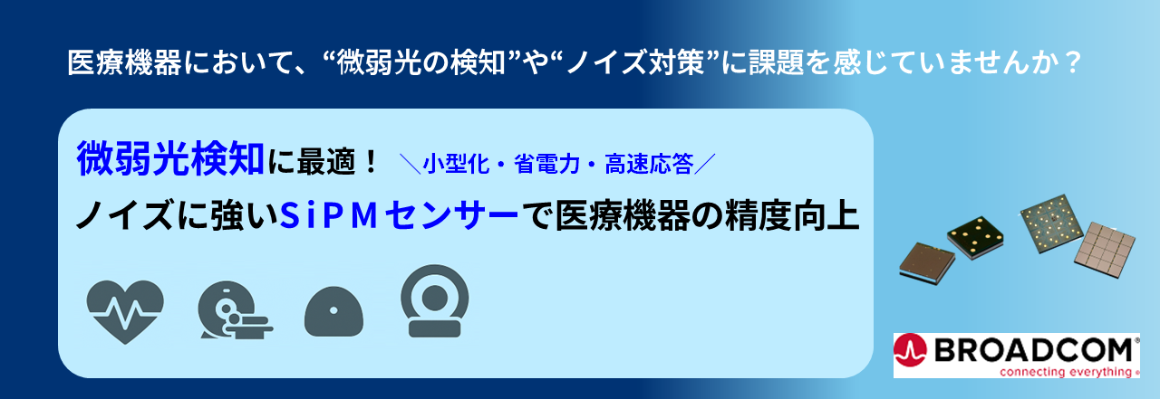 医療機器分野で、主に微弱光検出を目的とした用途において、SiPM(Silicon Photomultiplier)は、従来のPMT(光電子増倍管)やAPD(Avalanche Photodiode)に代わる次世代センサーとして、医療機器分野で急速に普及してきており、導入メリットが多いSiPMに、PMTやAPDから置き換えるお客様が増えてきています。