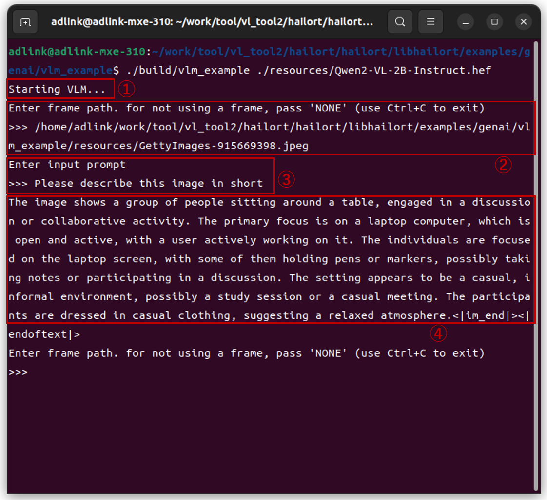 $ ./build/vlm_example ./resources/Qwen2-VL-2B-Instruct.hef