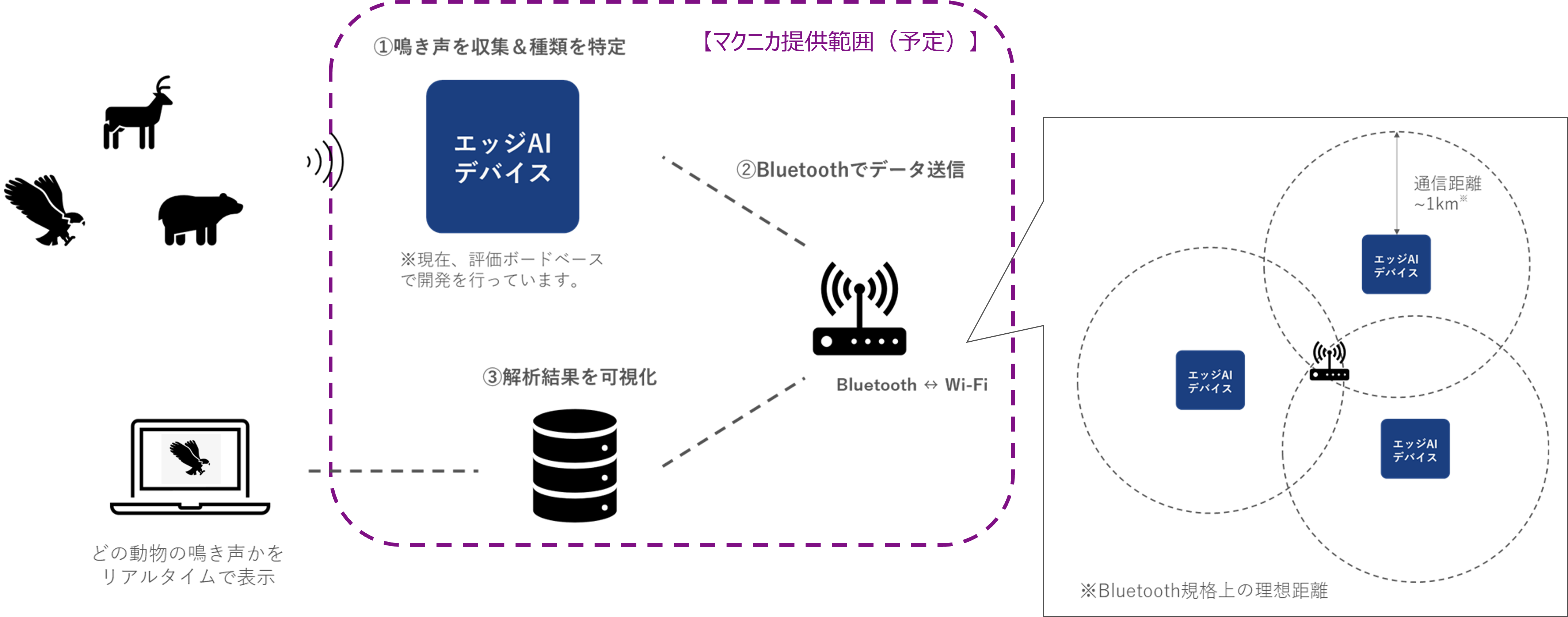 ●エッジAIによる音声識別:リアルタイムで鳴き声の動物を特定