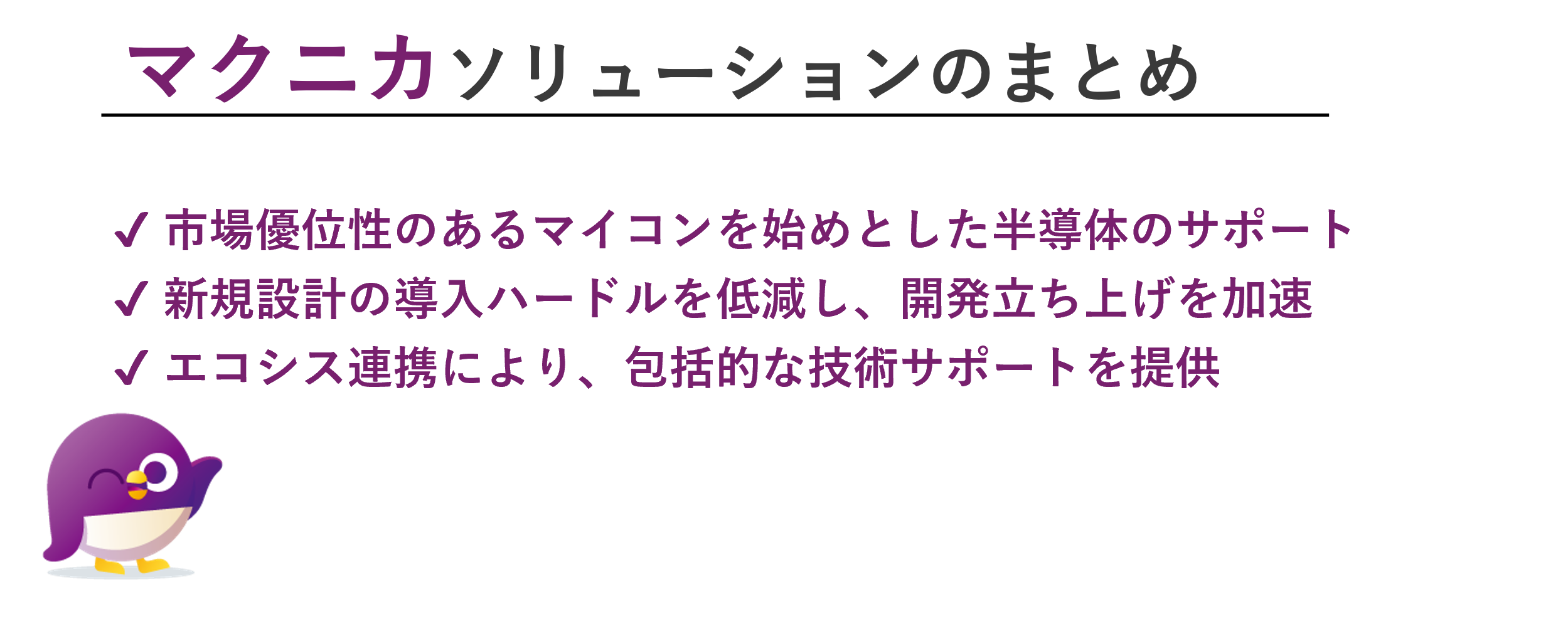 市場要求に応えるマイコンをご紹介するだけでなく、開発プロセスを加速させることで、お客様にはアプリケーション開発に集中していただくことが可能だと考えています。