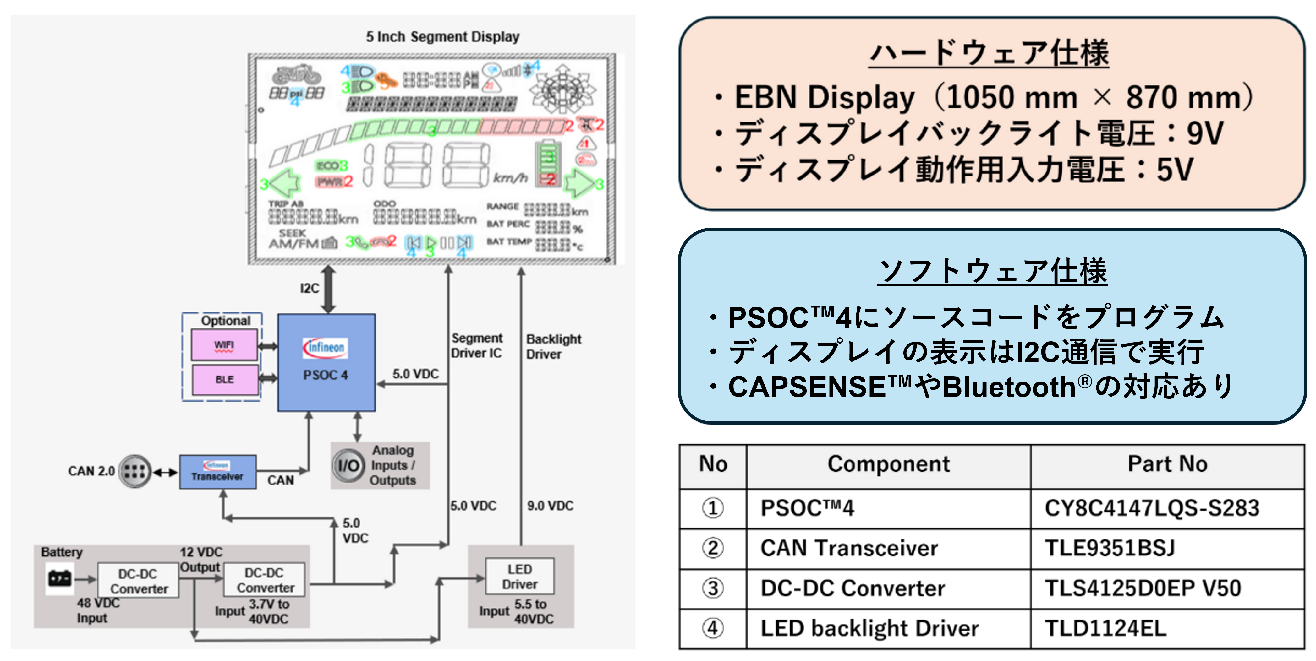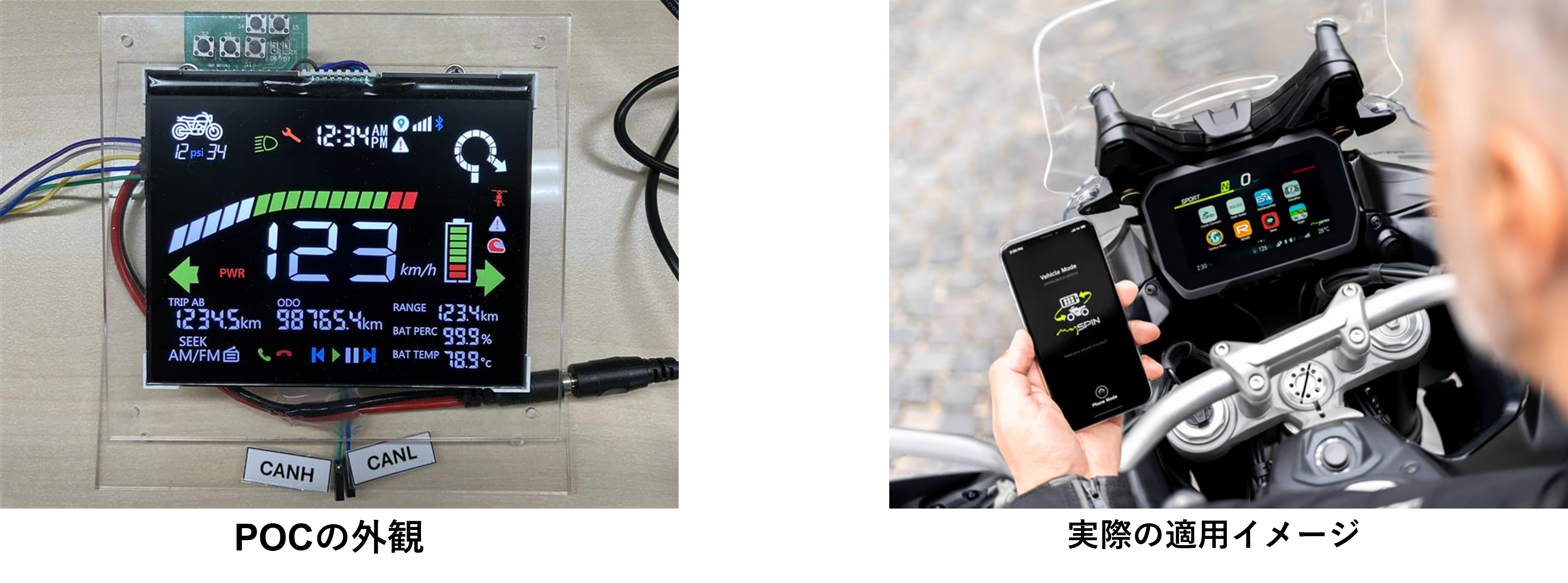 こうした市場背景と将来的なニーズの高まりを踏まえ、マクニカではインフィニオン社製品を活用し、二輪車向けディスプレイクラスターのPOC(Proof of Concept:概念実証)を作成しました。