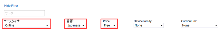 その他、必要に応じてキーワードや DeviceFamily、Curriculum を活用し絞り込みをしてください。
