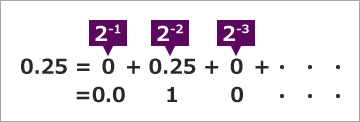 -10.25 の場合を見てみましょう。まずは小数点以下の 0.25 の部分はどう表現するのでしょうか?