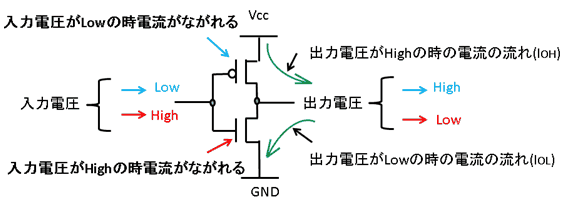 出力電圧が Low の時 FPGA 側に電流が流れる(FPGAに入ってくる)