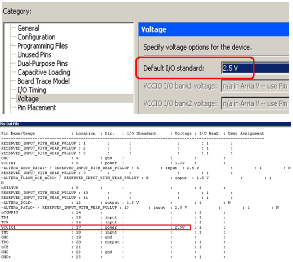 あれっ!このデザイン、 I/O Bank 1 だけ I/O Voltage が 2.5 V になってる!