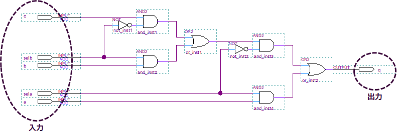 FPGA 内ではこのような論理回路が多数張り巡らされているイメージです。
