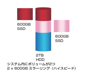 2台のSSD同士、2台のHDD同士でミラーリング構成にするのが一般的の様に思えますが、あえて、SSDとHDDのRAIDアレイの2つで構成する理由は以下になります。