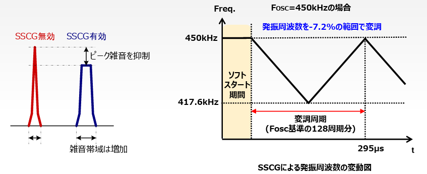 スペクトラム拡散機能(拡散率:-7.2%)によりEMIノイズを低減