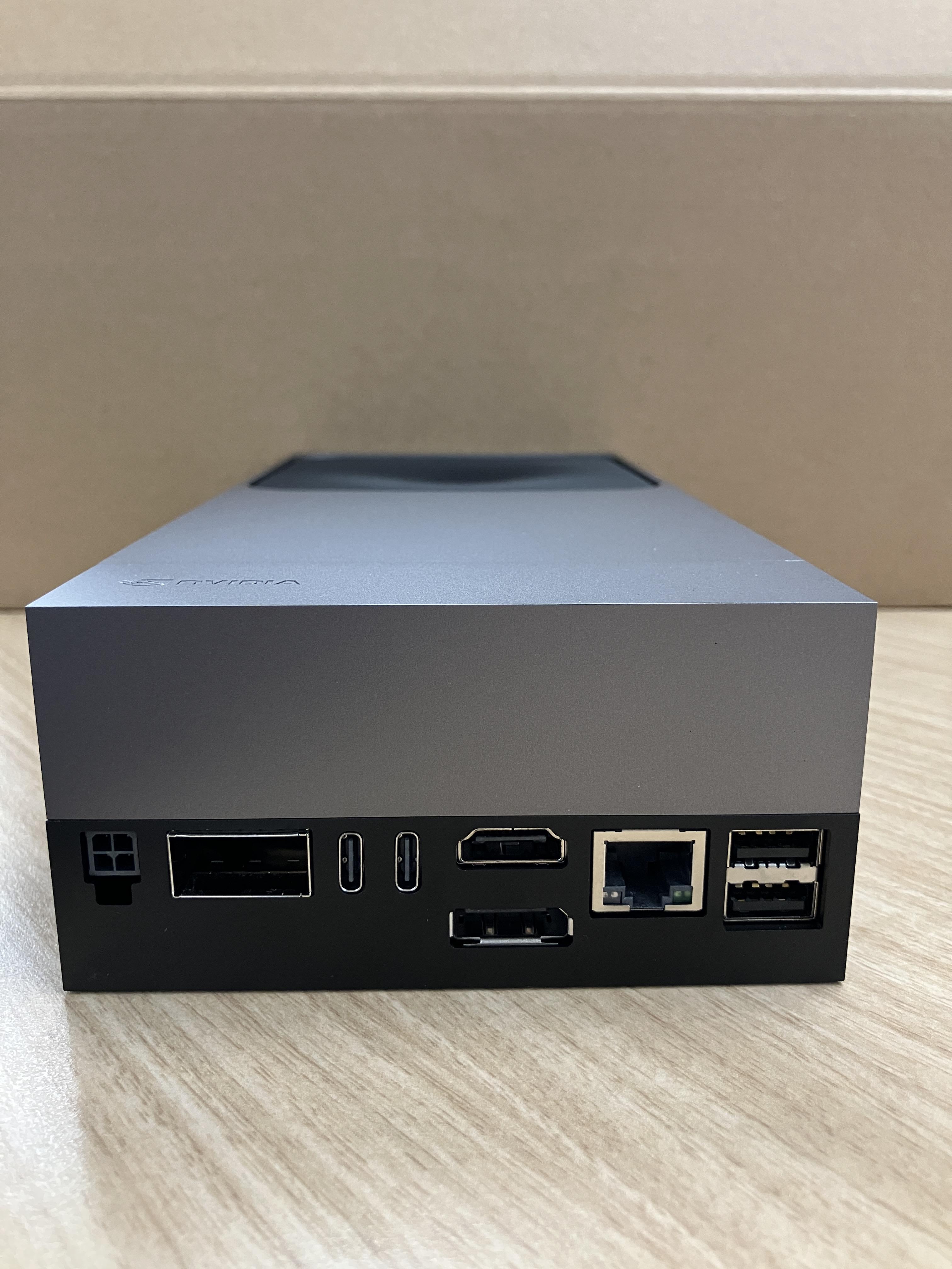 Jetson AGX Thor 開発者キットの電源ボタンを長押しして電源をオフにし、ディスプレイ・キーボード・マウスに繋げて電源を入れると、Ubuntuのセットアップが始まります。