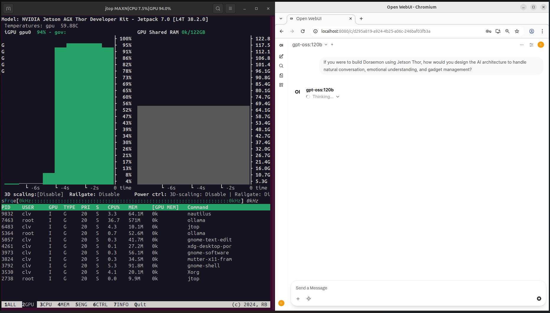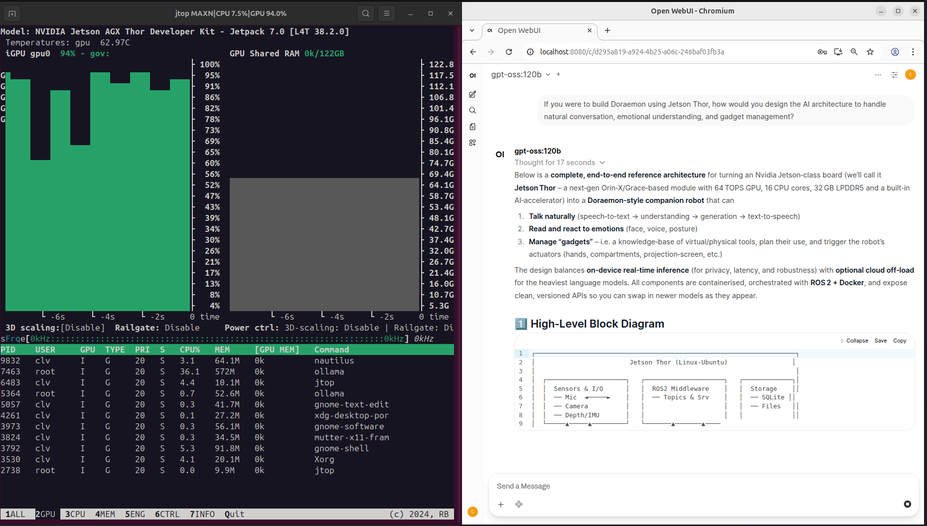 日本語訳: 「もしJetson Thorでドラえもんを構築するとしたら、自然な会話、感情理解、ガジェット管理を処理するAIアーキテクチャーをどのように設計しますか?」